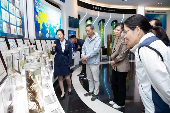 一行人首先參觀了中國海藻科技館,被明月海藻活性物質(zhì)在多個領(lǐng)域的廣泛應(yīng)用,以及集團(tuán)在海洋生物技術(shù)領(lǐng)域的卓越創(chuàng)新成果深深吸引。這些前沿的科技展示讓他們對集團(tuán)的新質(zhì)生產(chǎn)力和顯著的發(fā)展成就給予了高度評價。